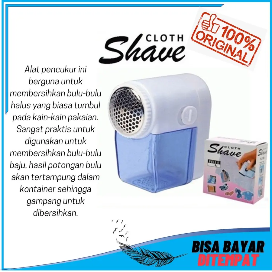 Alat pencukur ini berguna untuk membersihkan bulu-bulu halus yang biasa tumbul pada kain-kain pakaian. Sangat praktis untuk digunakan untuk membersihkan bulu-bulu baju, hasil potongan bulu akan tertampung dalam kontainer sehingga gampang untuk dibersihkan.