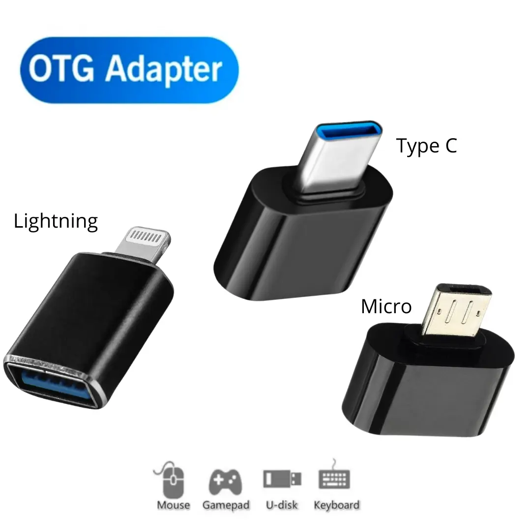OTG Adapter Lightning, Micro, Type C for Computer, IPhone, Anroid