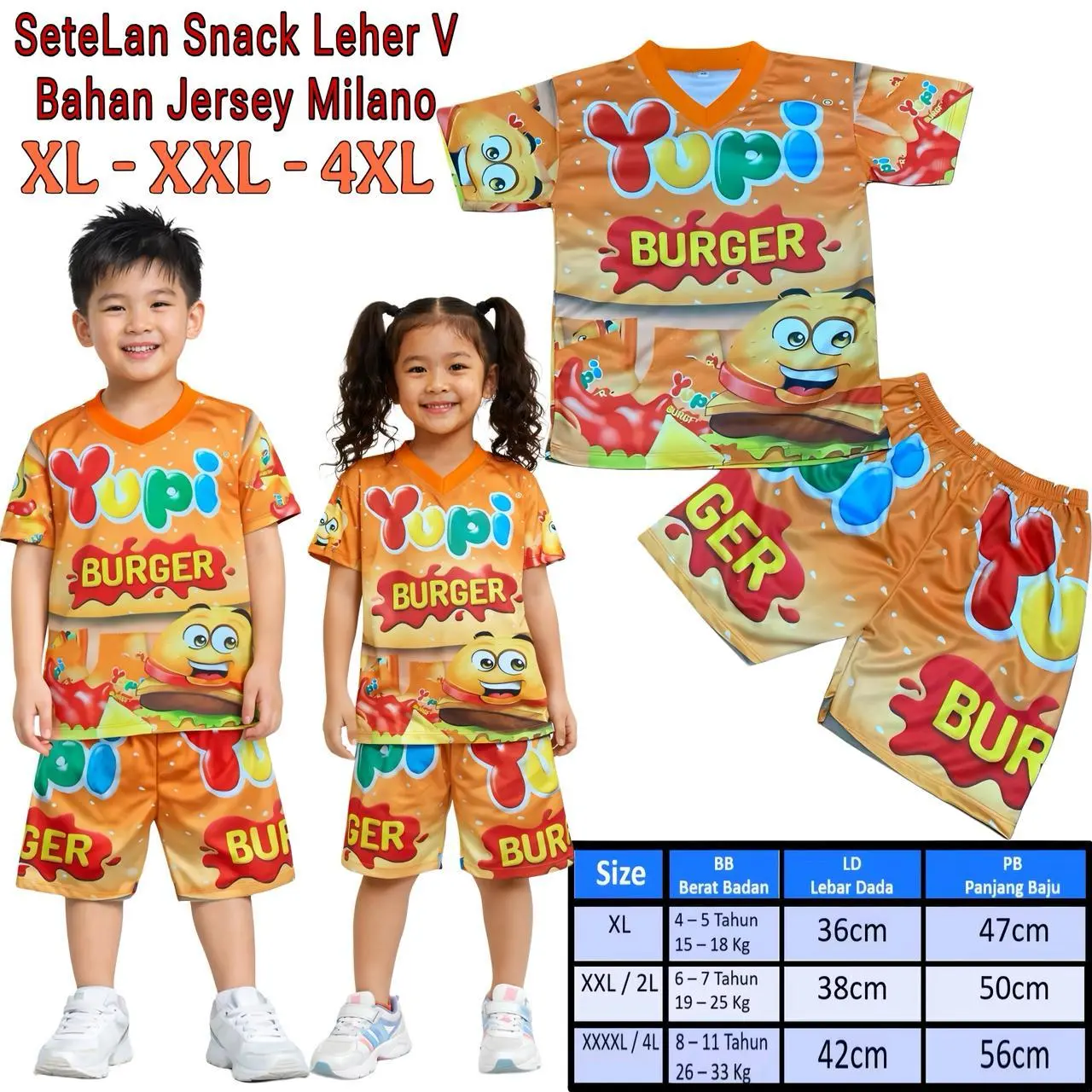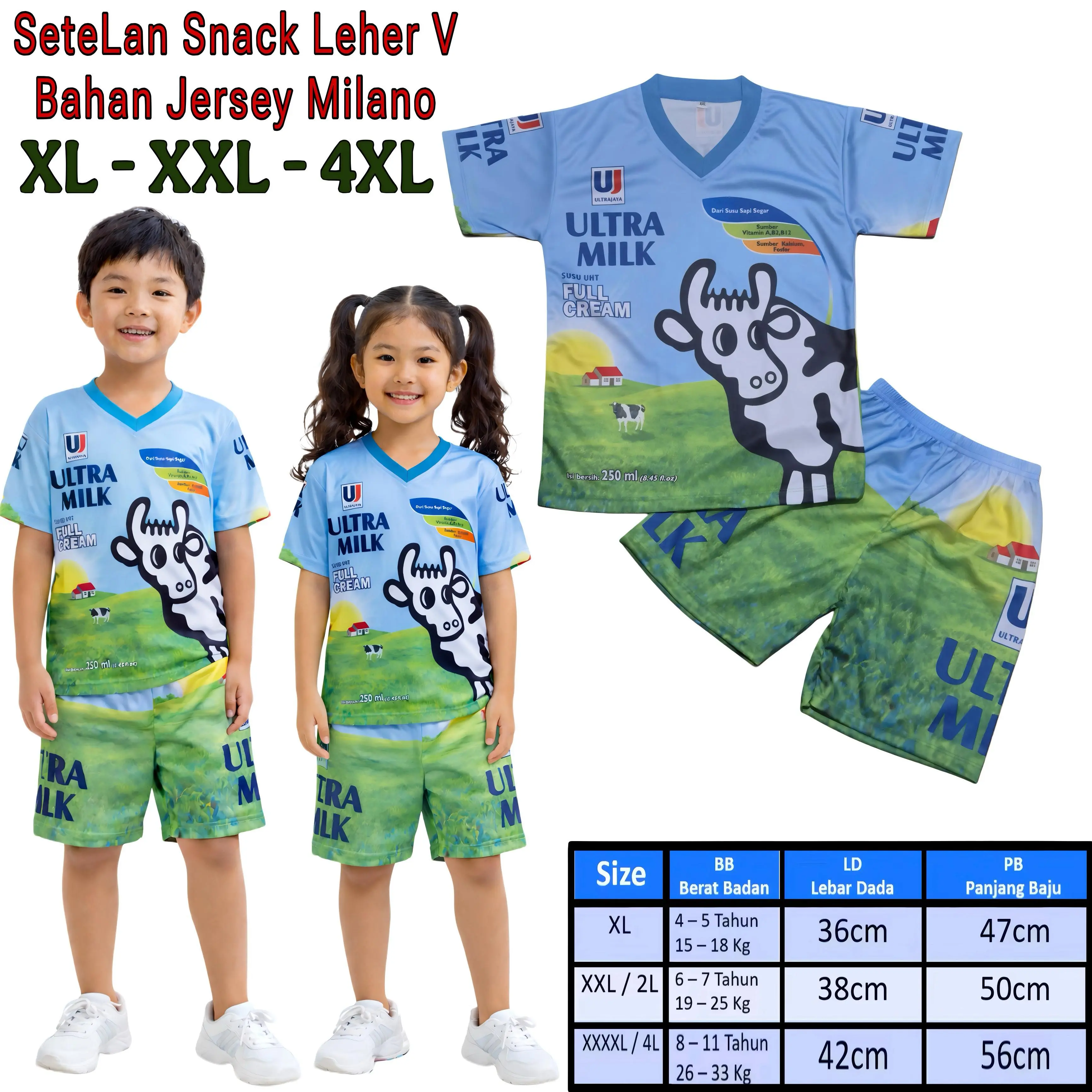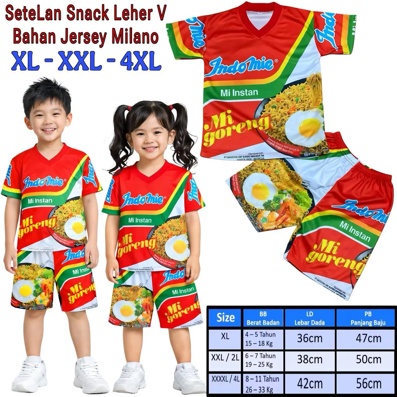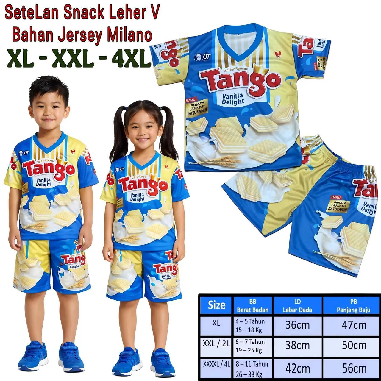 Setelan Anak Jersey Milano printing Motif Snack Indomie, Oreo, Ultra Milk, Yupi, Taro / Baju Anak Jersey Milano Printing Viral