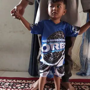 Bentuk dan ukuran: Model lehernya V dan ukuran XXL untuk umur 6 tahun TB 110 cm dan BB 24 kg baju dan celana nya terlalu kecil dan ngatung