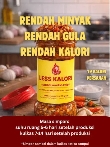 2. Sambal LESS KALORI rendah gula, menggunakan gula jawa asli dari kabupaten Bantul, serta menggunakan bahan segar tanpa bahan pengawet buatan, bukan hanya partner makan enak, tapi juga lebih sehat.
