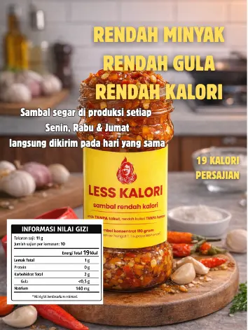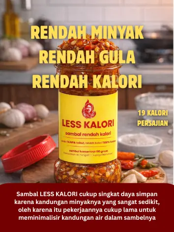 1. Sambal LESS KALORI sangat rendah minyak sehingga sambal terlihat padat, berbeda dengan kebanyakan sambal lain yang minyaknya bisa sampai 50%