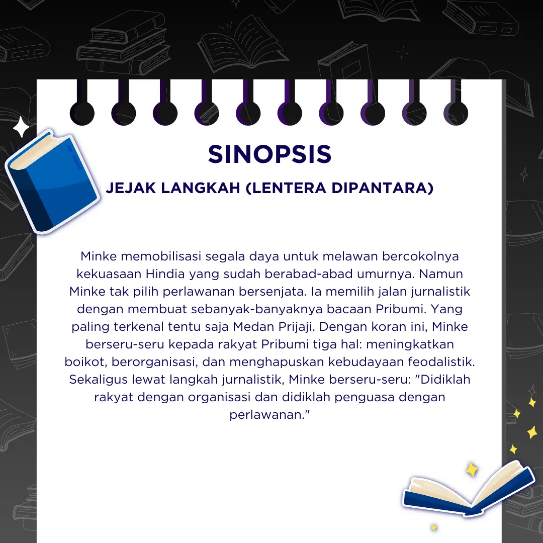 Minke memobilisasi segala daya untuk melawan bercokolnya kekuasaan Hindia yang sudah berabad-abad umurnya. Namun Minke tak pilih perlawanan bersenjata. Ia memilih jalan jurnalistik dengan membuat sebanyak-banyaknya bacaan Pribumi. Yang paling terkenal tentu saja Medan Prijaji.