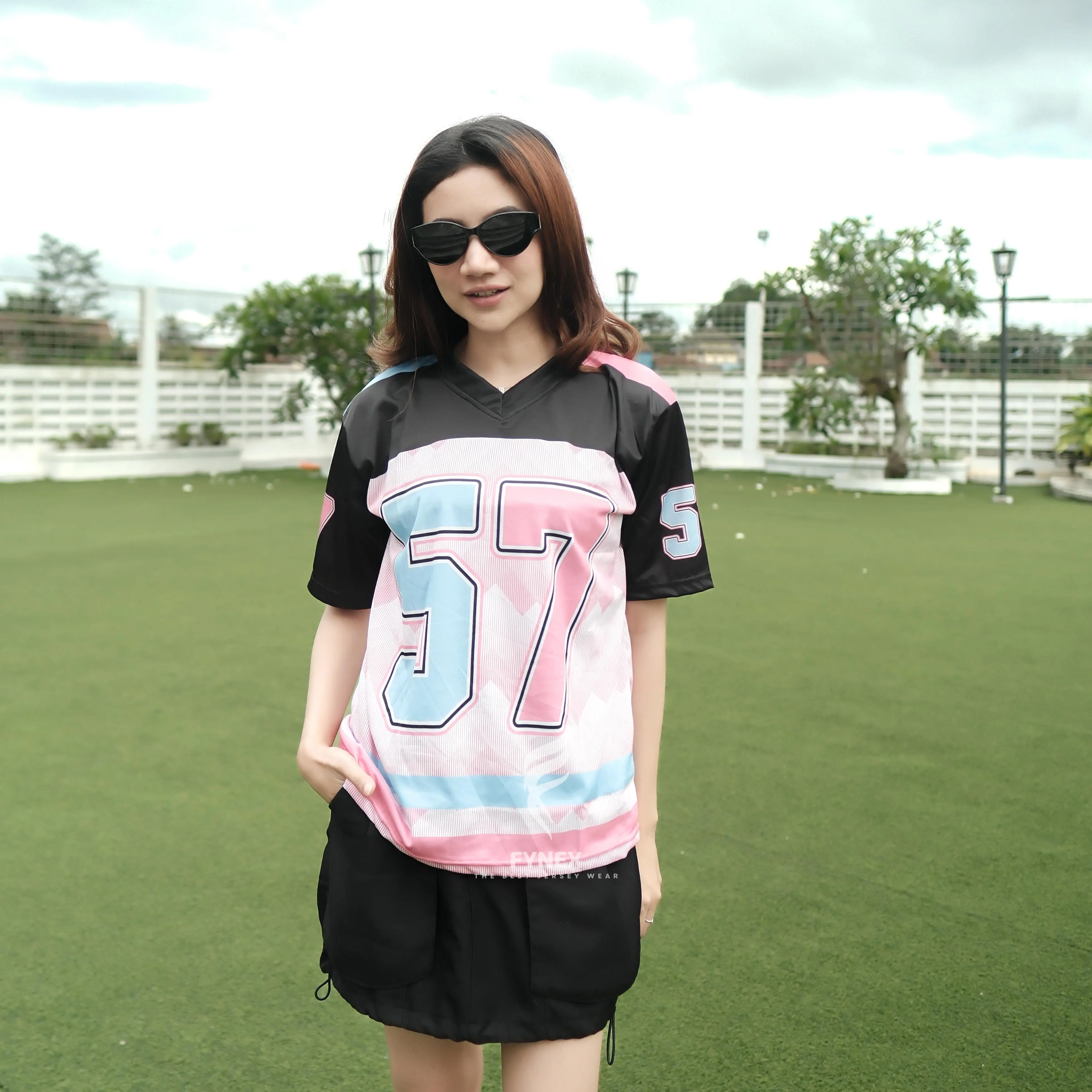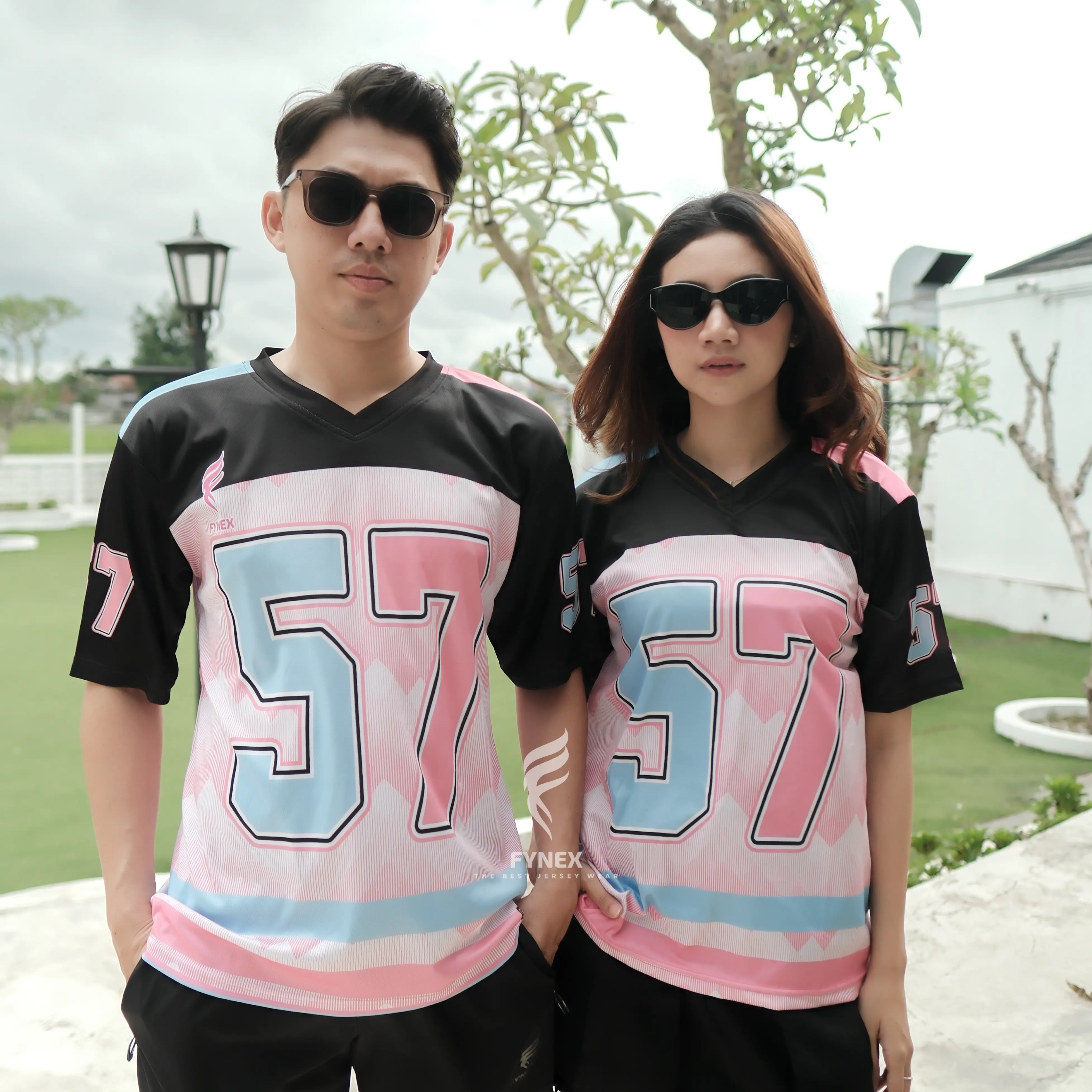 ABAH ICAN X Fynex Sport - Jersey 57 Pink Black Kerah V Neck X Letter F Jersey VIntage Boxy DIgital Print Unisex Anti UV + Anti Bakteri Pria dan Wanita Baju Olahraga