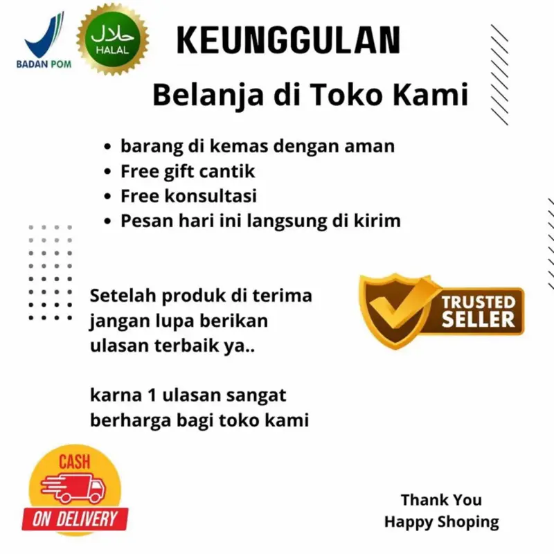 Produk bagus. Sama sperti yang biasa aku pakai. Awalnya ragu krna ulsan masih dikit. Tapi tanya seller dijawab dengan sabar dan ramah. Di spilkan juga barangnya. Thnx seller. Next order lagi.
