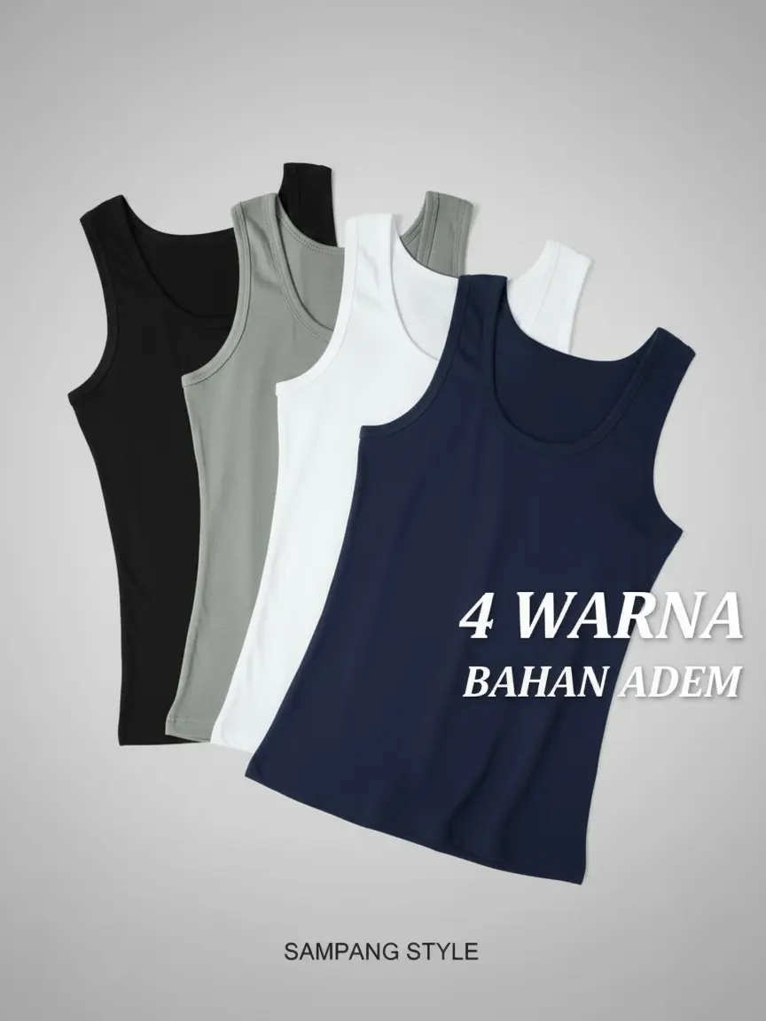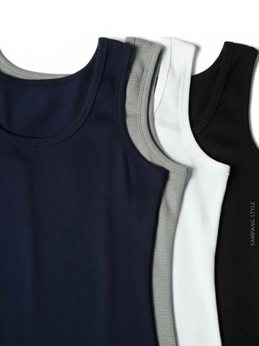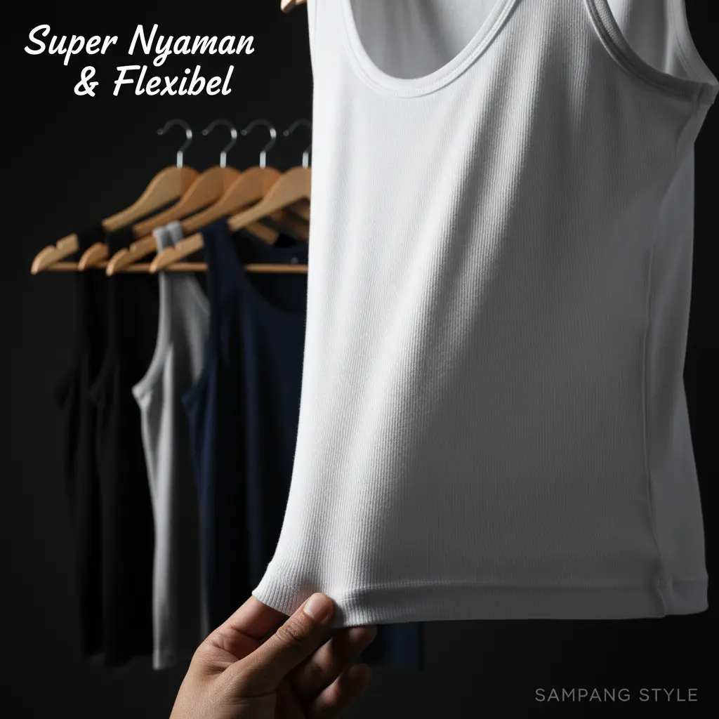 Terbuat dari bahan cotton rib adem dan elastis, mengikuti bentuk badan tanpa terasa sesak.