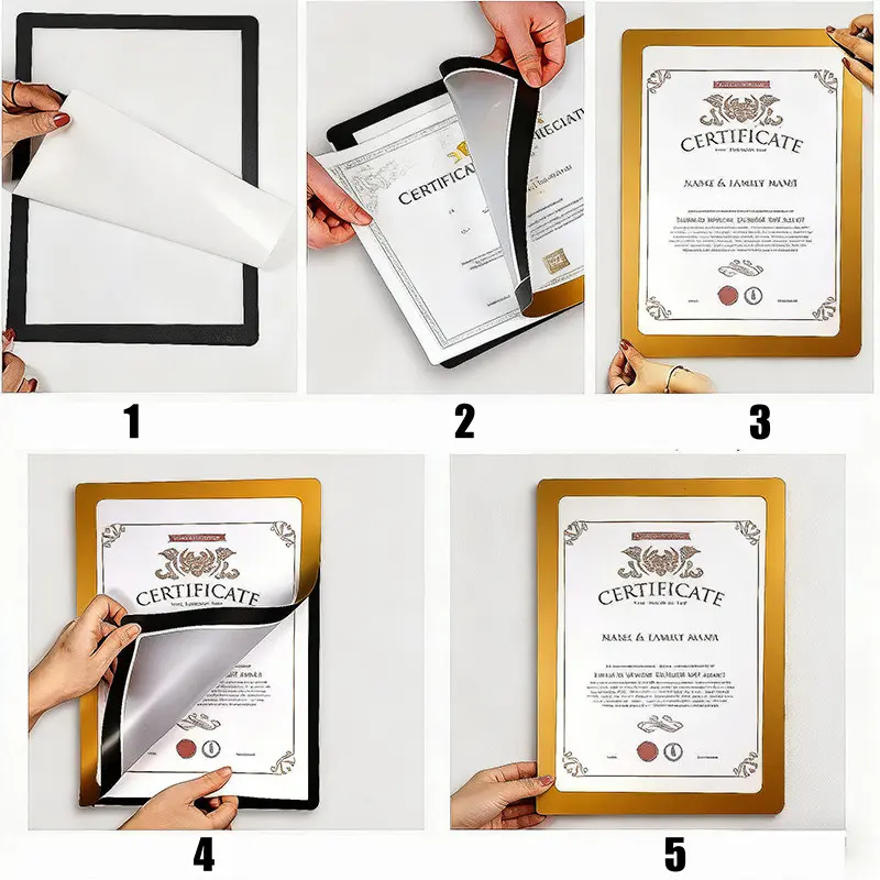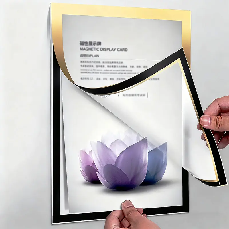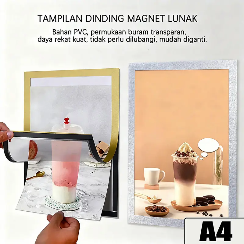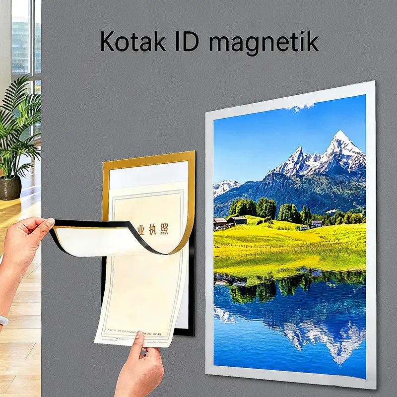 3. Bagian belakang magnet fleksibel dengan aman menahan bingkai saku foto ke permukaan logam apa pun. Banyak digunakan pada lemari es, lemari arsip, pintu baja, papan tulis magnetik, dll.