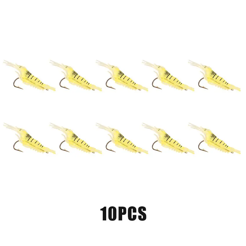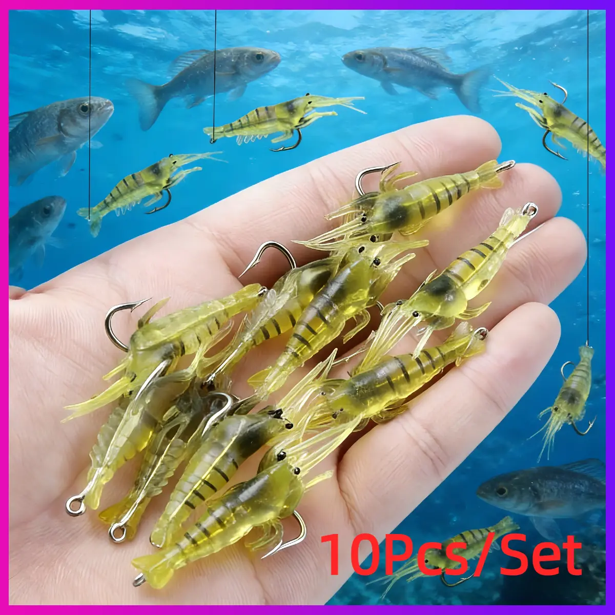 10Pcs Soft Lure Umpan Udang Tiruan 4cm Bahan Silikon Lembut Dengan Kail Stainless Bercahaya untuk Pancing Laut dan Air Tawar Tahan Gigitan Kualitas Premium Ready Stock COD Cepat Kirim Garansi Produk Original