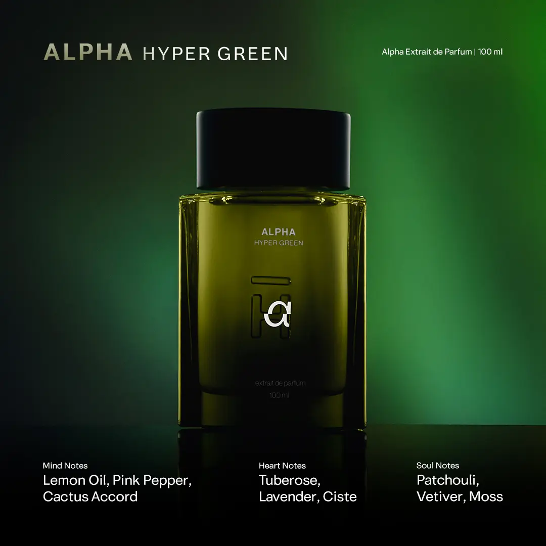 Sebagai Extrait de Parfum, Hyper Green dibuka dengan nuansa hijau yang bersih dari Pure Natural Lemon Oil, Pink Pepper dan Cactus Accord. Dipertajam oleh Ciste Absolute, dan akhirnya menetap sebagai aroma hijau yang mengakar dari Patchouli Indonesia, Vetiver Java dan Moss.