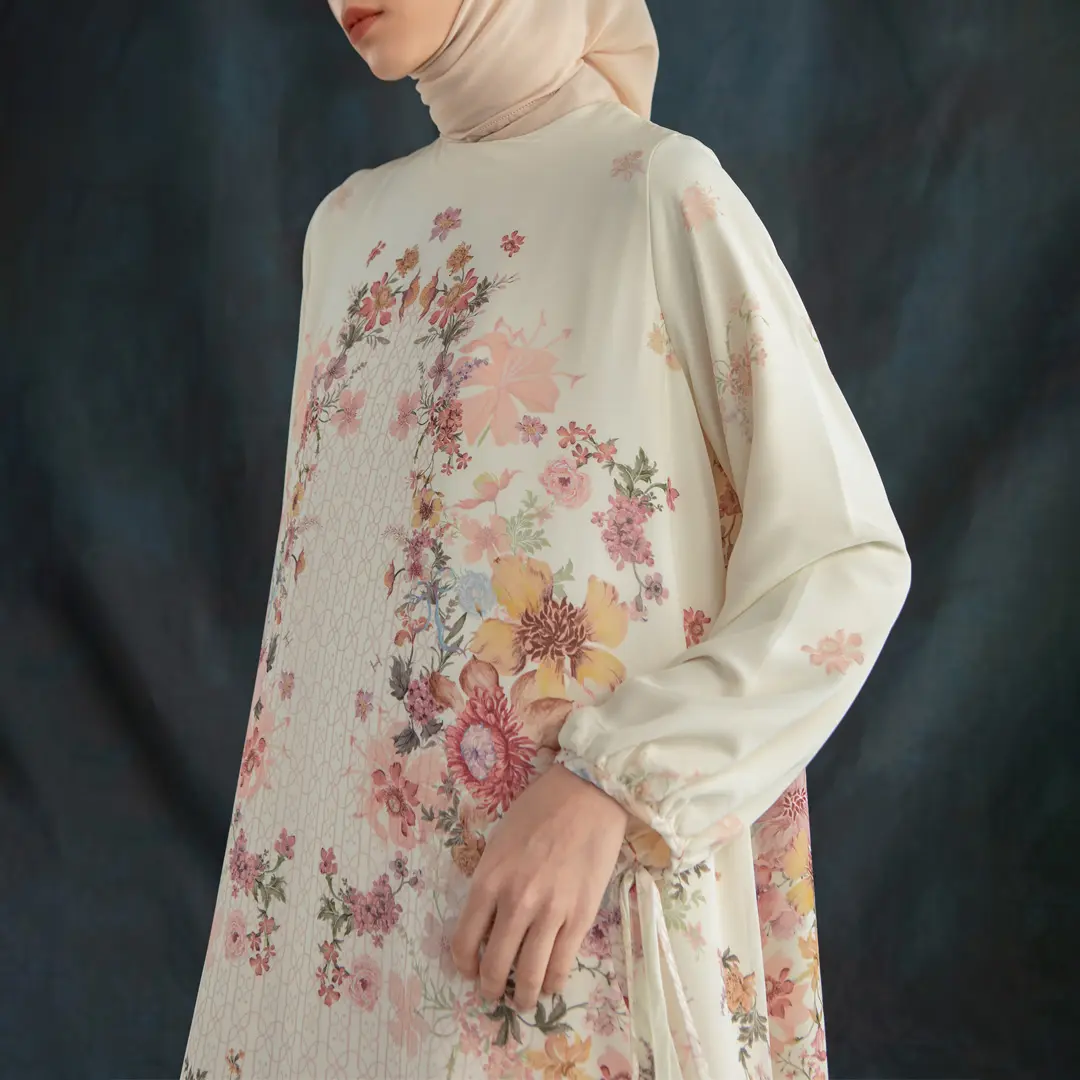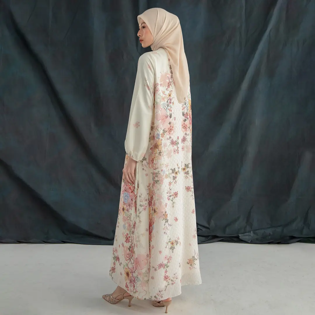 5. HijabChic Selene Ivory Blossom Dress - Dress Maxi Lebaran Premium Floral Elegan