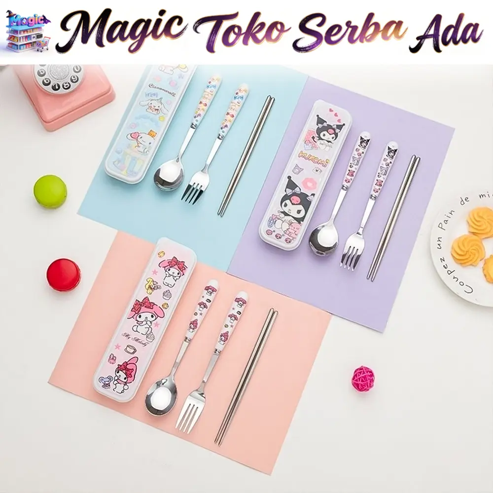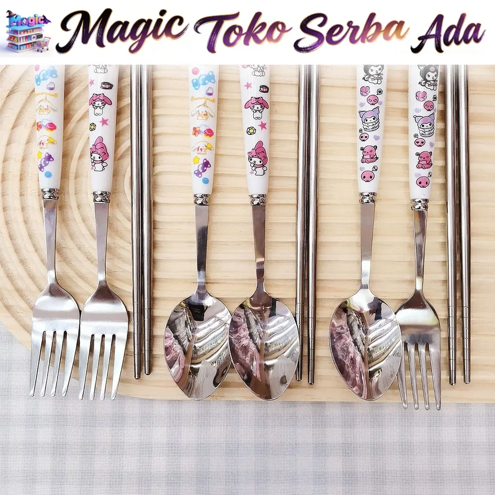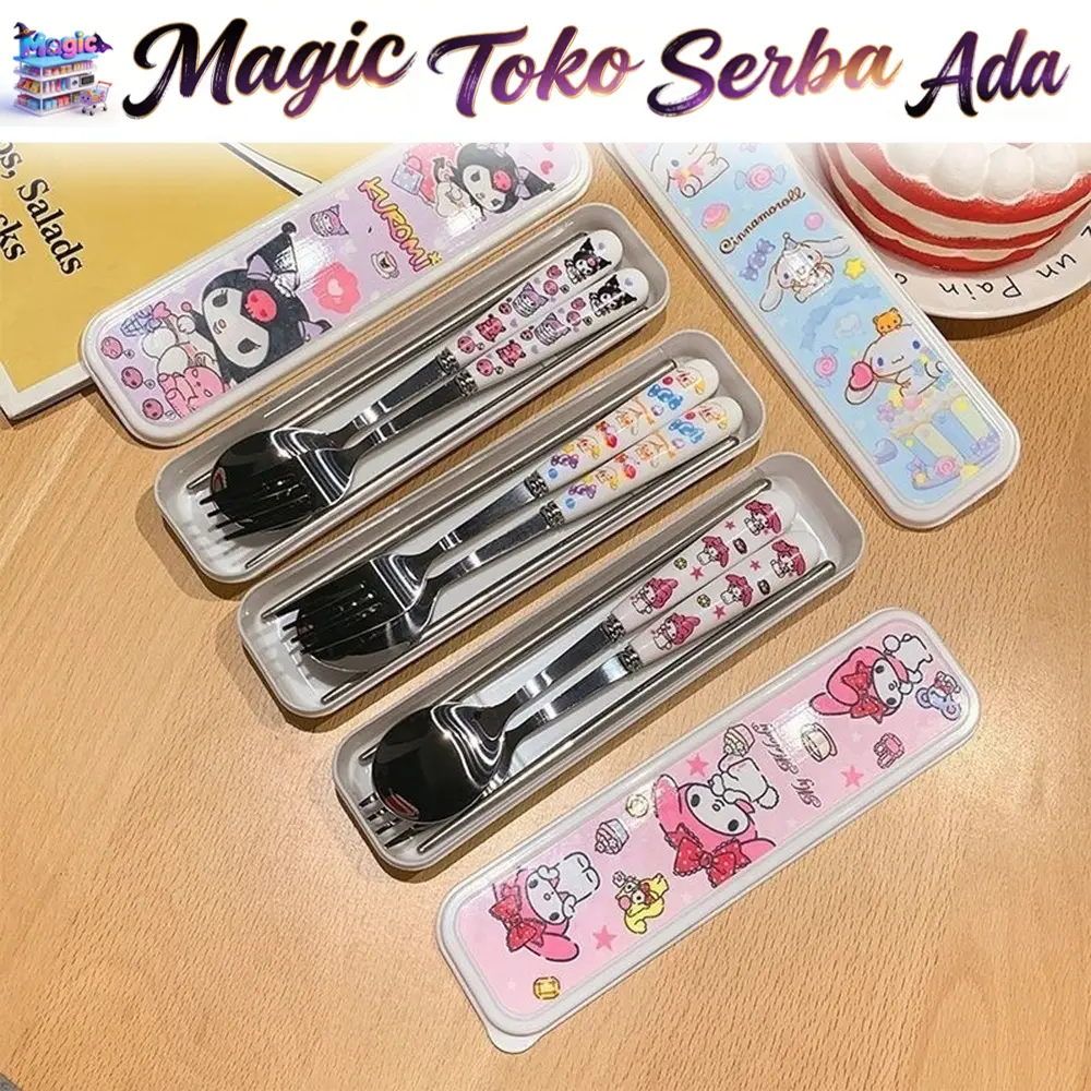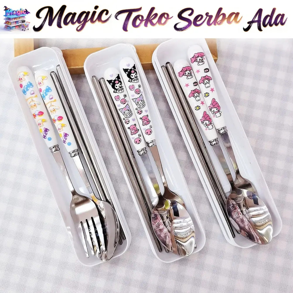 5. Magic Toko Serba Ada Set Alat Makan H1083 Peralatan Makan Sandok Garpu Sumpit Stainless Steel Plus Box Motif Lucu Bahan Berkualitas Tahan Karat