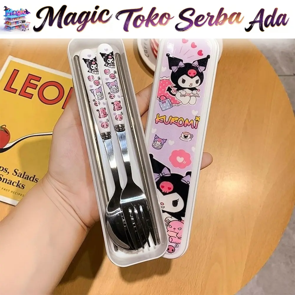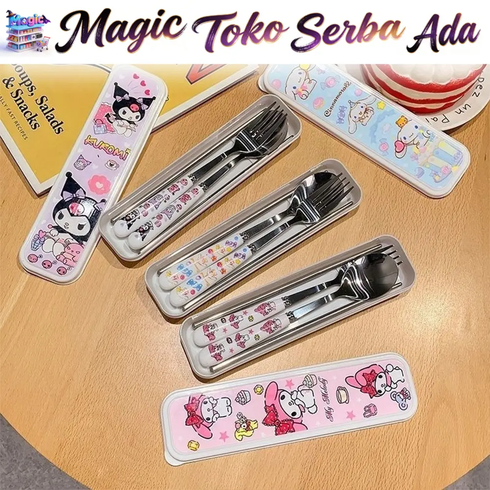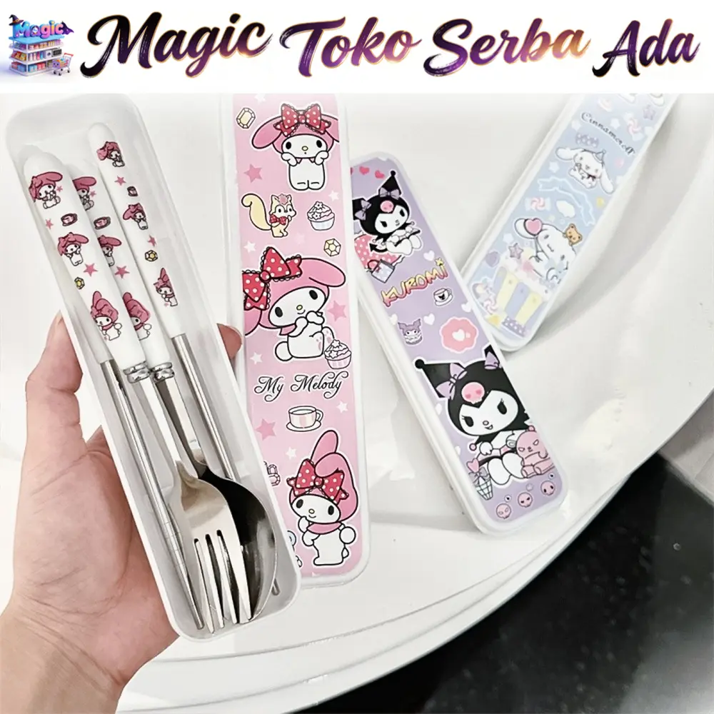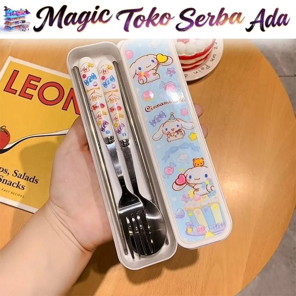 5. Magic Toko Serba Ada Set Alat Makan H1083 Peralatan Makan Sandok Garpu Sumpit Stainless Steel Plus Box Motif Lucu Bahan Berkualitas Tahan Karat