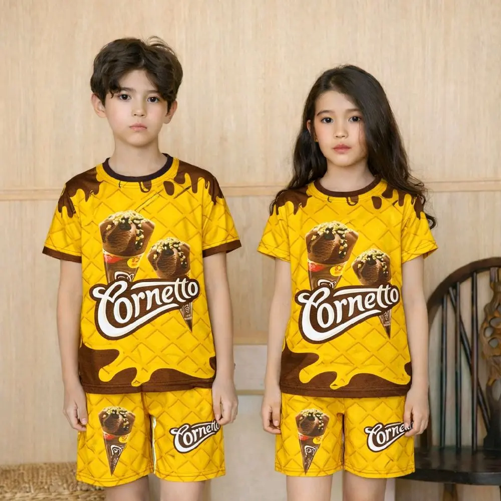 (bisa cod) READY SETELAN ANAK JERSEY GAMBAR UNIK SNAK MIE ES CREM / CEWEK COWOK BISA PAKAI