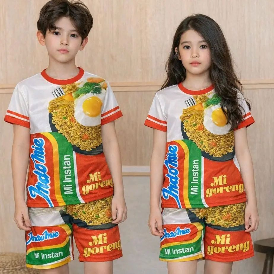 (bisa cod) READY SETELAN ANAK JERSEY GAMBAR UNIK YUPI SNAK MIE GORENG MIE SOTO ES CREM / CEWEK COWOK BISA PAKAI