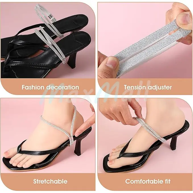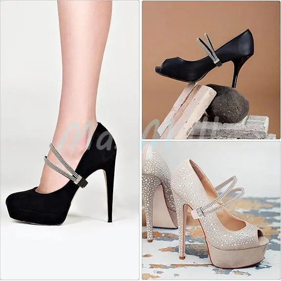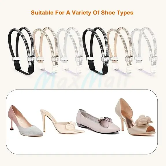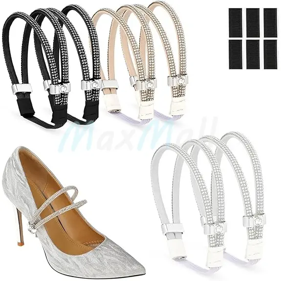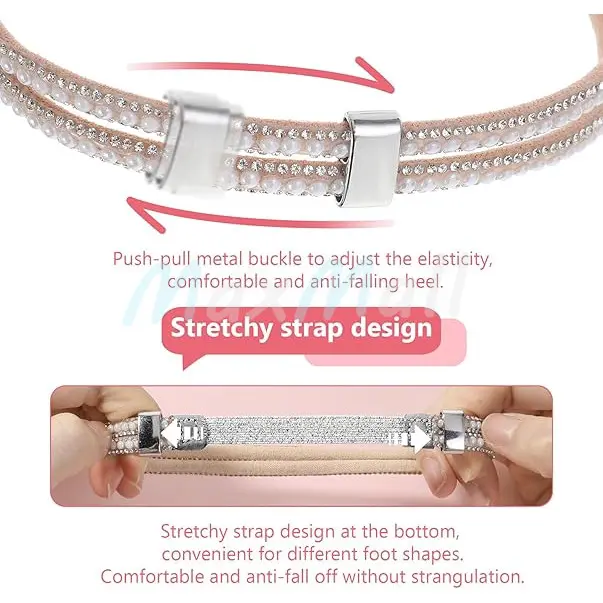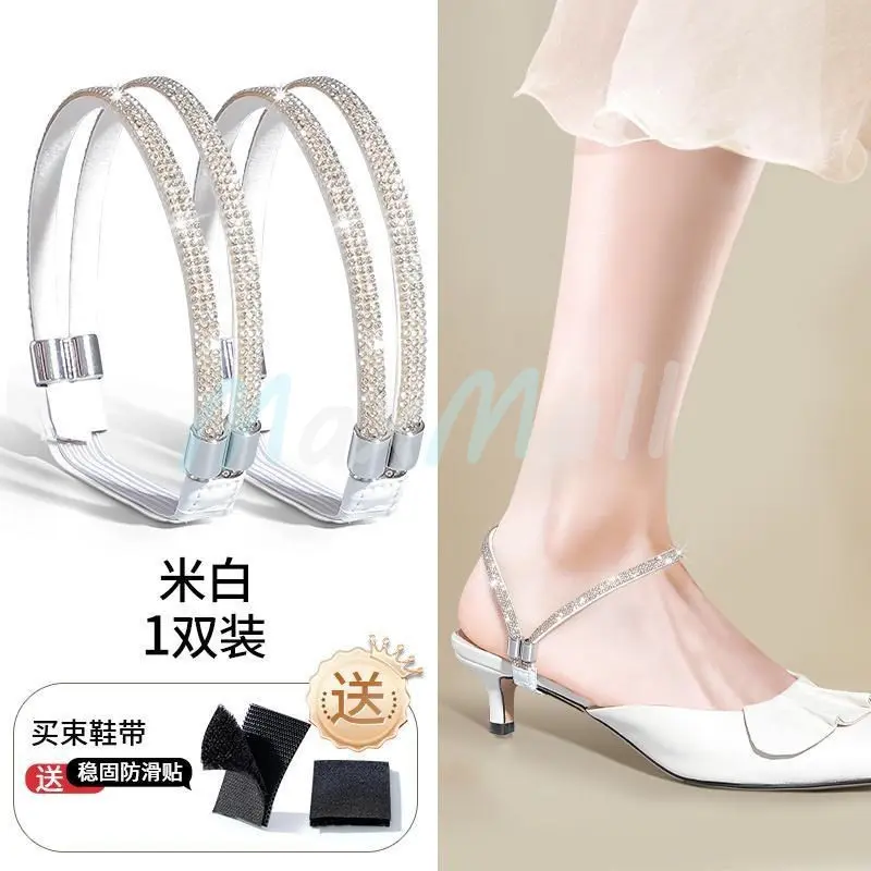 【Isi Paket】Tali tumit tinggi elastis dirancang dengan berlian imitasi berkilau untuk membuat sepatu Anda terlihat lebih cantik, ada tiga jenis tali tumit tinggi untuk dipilih (warna sampanye, Hitam, Putih). Juga dilengkapi dengan stiker stabilitas