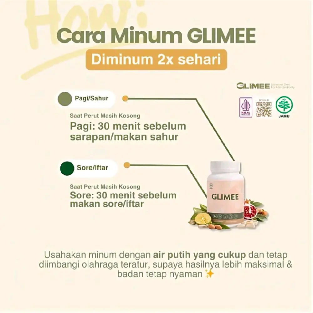 Pastikan Anda mendapatkan suplemen kesehatan GLIMEE asli dengan sertifikasi BPOM.