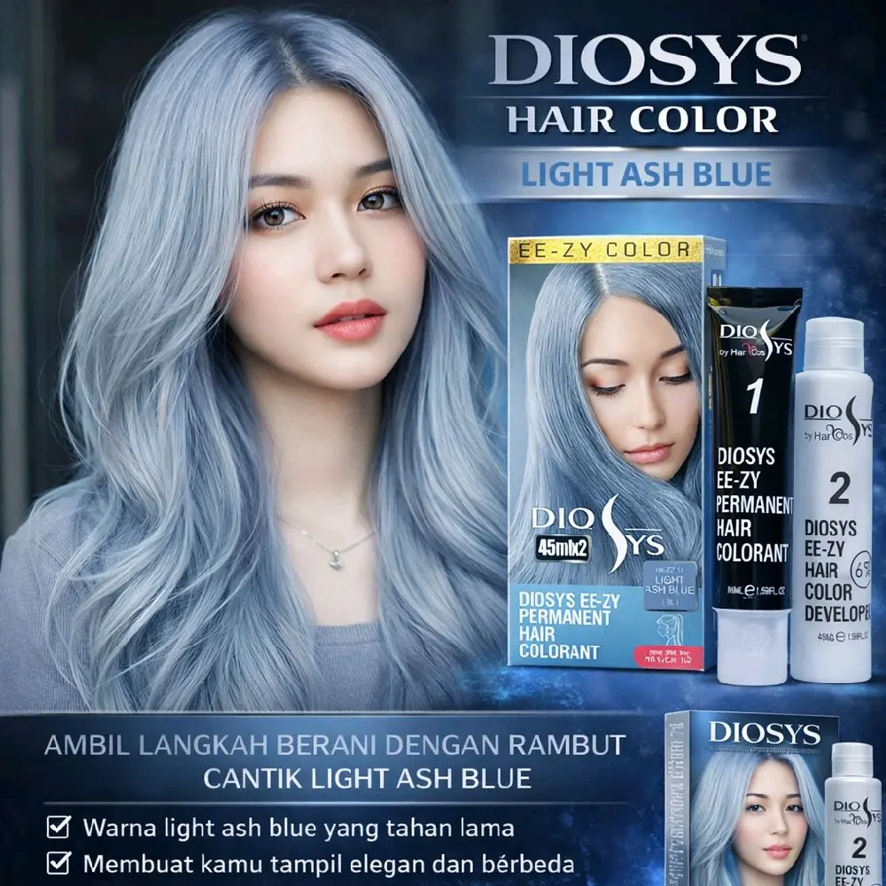Rambut indah, warna tahan lama,membuat wajah terlihat cerah dan penampilan makin percaya diri hanya dengan Diosys Pewarna Rambut! Cat rambut Diosys hadir dengan berbagai pilihan warna kekinian seperti Blue Black, Ash Brown, Burgundy, Blonde, hingga warna highlight yang bikin kamu tampil beda.