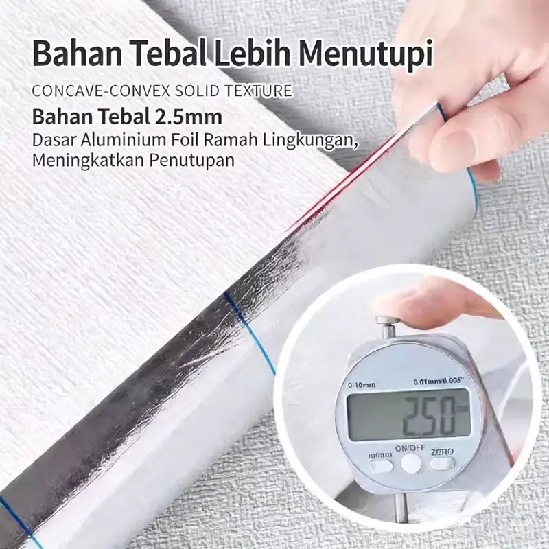 Produk ini adalah wallpaper busa linen 3D premium dari Gruper, cocok untuk menghiasi kamar tidur, ruang tamu, dapur, atau lemari pakaian. Desain tekstur linen alami memberikan sentuhan elegan dan modern pada ruangan Anda, membuat ruang terlihat lebih mewah dan nyaman. Selain dekoratif, wallpaper ini juga memiliki fungsi praktis yang tidak bisa diabaikan!