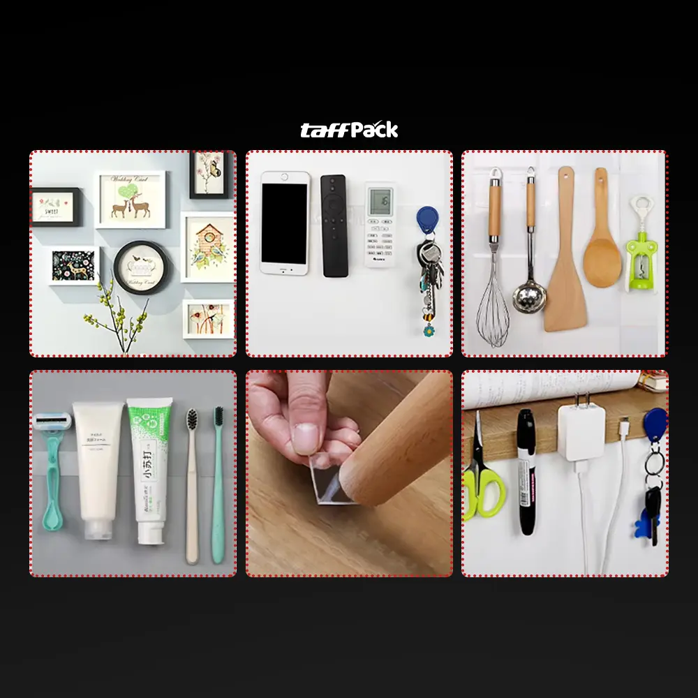 Ingin menempelkan barang tanpa paku dan tanpa merusak dinding? Gunakan **TaffPACK Double Tape Perekat Dua Sisi**. Didesain dengan bahan **Nano PU Gel** transparan yang kuat dan bisa dicuci ulang, perekat ini menjadi solusi praktis untuk kebutuhan rumah tangga, kantor, hingga dekorasi ruangan. Aman, efisien, dan tidak meninggalkan bekas!
