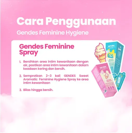- Semprotkan gendes feminine hygiene spray ke area kewanitaan