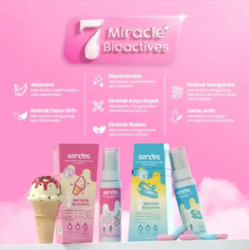 Gendes Feminine Care Spray Hazelnut dengan “7 Miracle Bioactives” yang bekerja sebagai perlindungan ekstra setelah membersihkan area kewanitaan dengan aroma manis yang aman untuk kulit sensitif, dan diformulasi khusus untuk area kewanitaan.