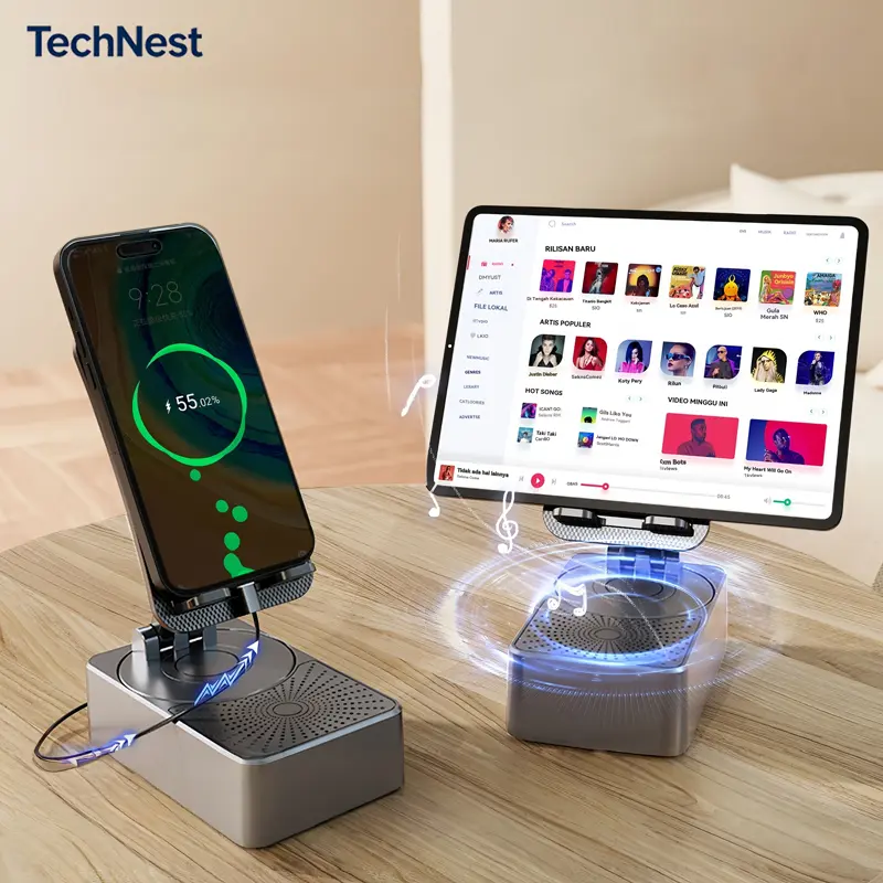 1. Ini adalah speaker Bluetooth dan dudukan ponsel, membebaskan tangan Anda saat melakukan panggilan, menonton video, atau menonton film.