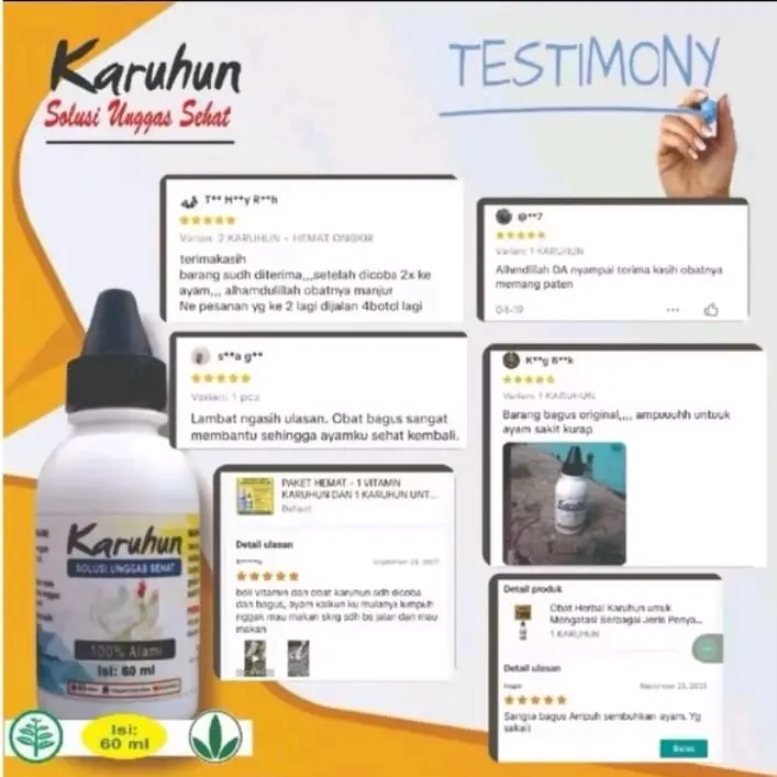 Karuhun PAKET EKONOMIS OBAT KARUHUN HERBAL AYAM UNTUK MENGATASI Cekreh Flu Snot Berak Putih Hijau Sakit Mata Kurap Meriang Lumpur Gejala Aratan