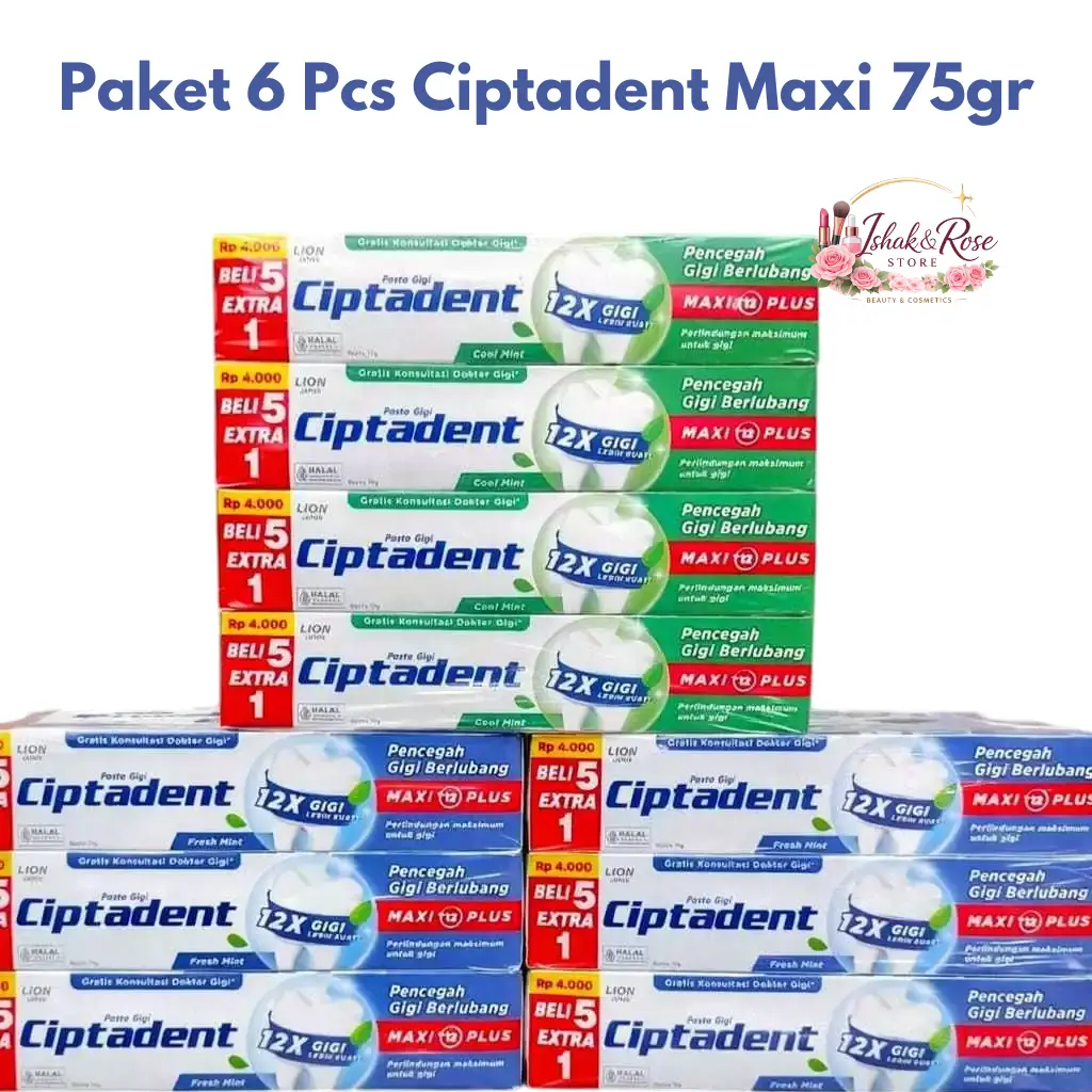 ·Isi Paket: 6pcs pasta gigi Ciptadent, setiap paket berisi 75 gram. 📏