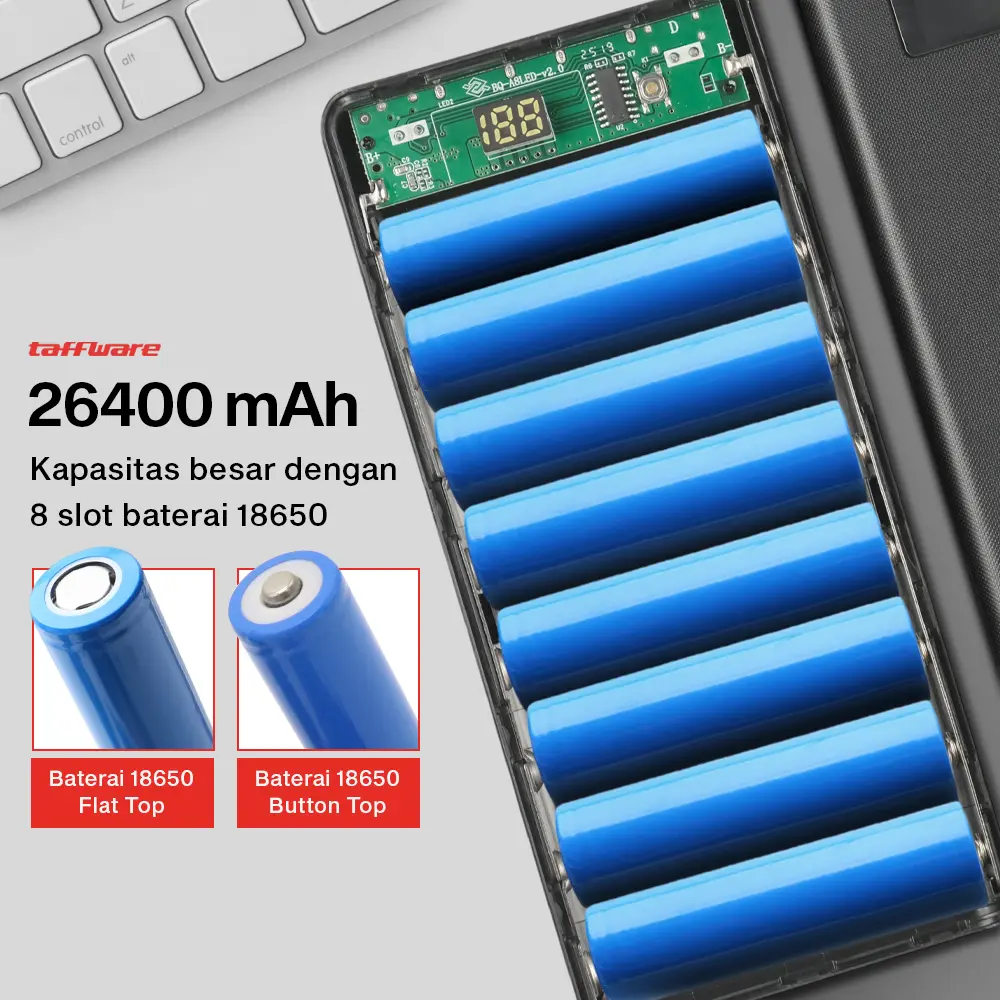 Bagi Anda yang ingin power bank berkapasitas besar dan fleksibel, Taffware menghadirkan Power Bank DIY Case. Dengan kapasitas hingga 8 baterai 18650, Anda bisa merakit power bank sesuai kebutuhan. Produk ini ideal untuk yang sering bepergian atau membutuhkan cadangan daya besar, dengan desain portabel, ergonomis, dan layar LCD untuk memantau kapasitas baterai secara real-time.