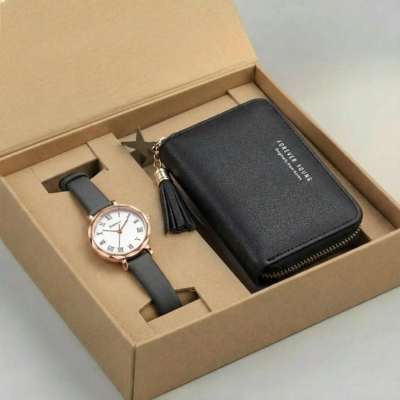 Set Jam Tangan Wanita Elegan Dan Dompet Fashion Elegan