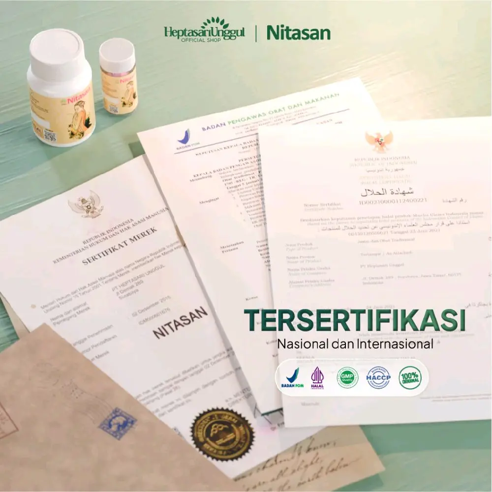 Pastikan Anda memilih NITASAN Original BPOM untuk kesehatan Anda yang aman dan alami. Tersedia dalam kemasan 50 kapsul.