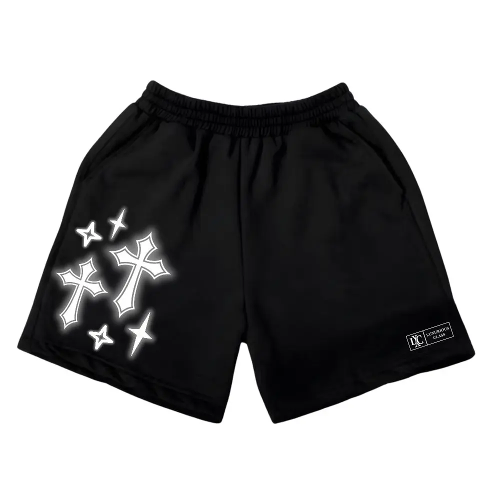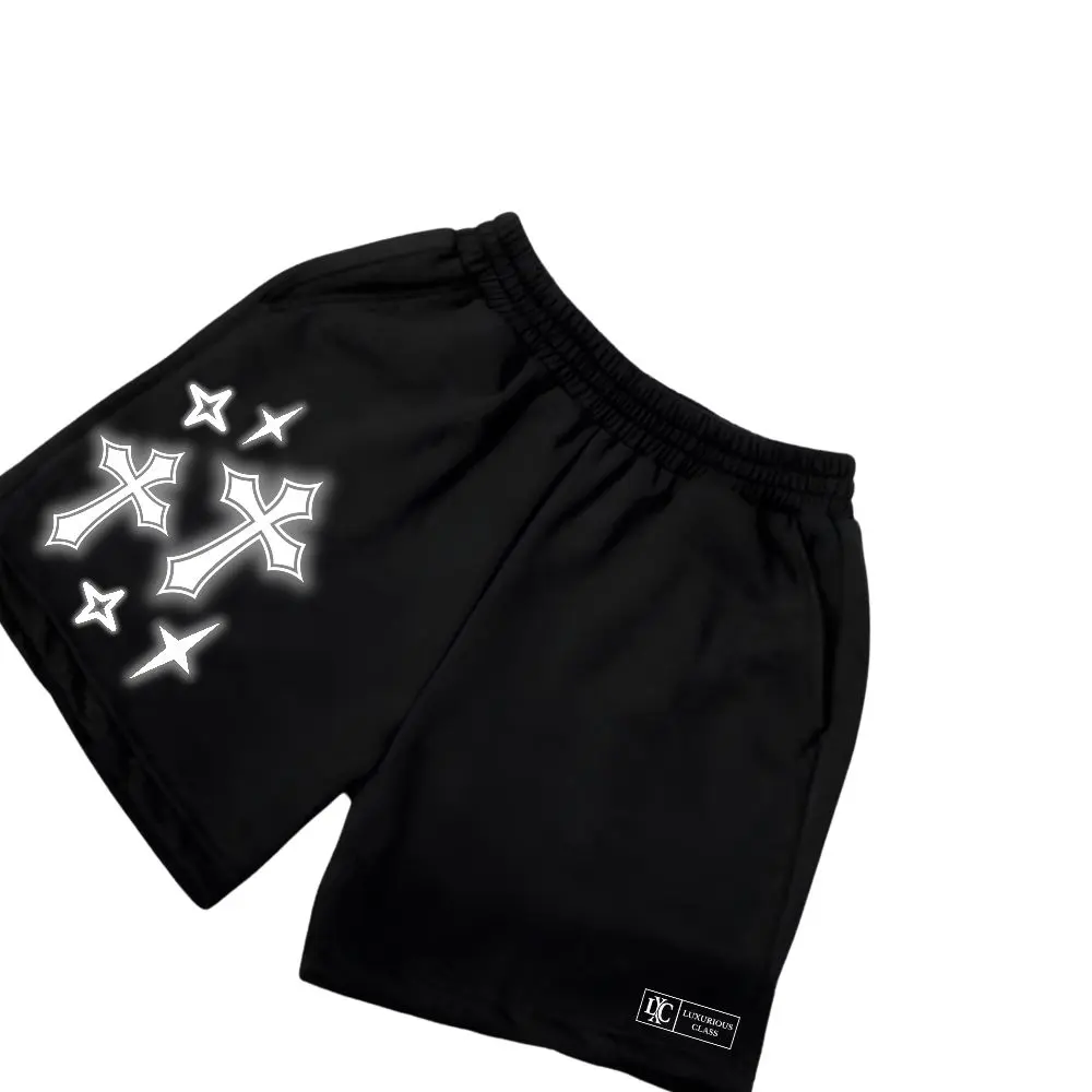 Celana pendek dengan desain sablon reflektif nyala saat terkena cahaya/flash. Cocok untuk outfit harian, atau nongkrong bareng teman.