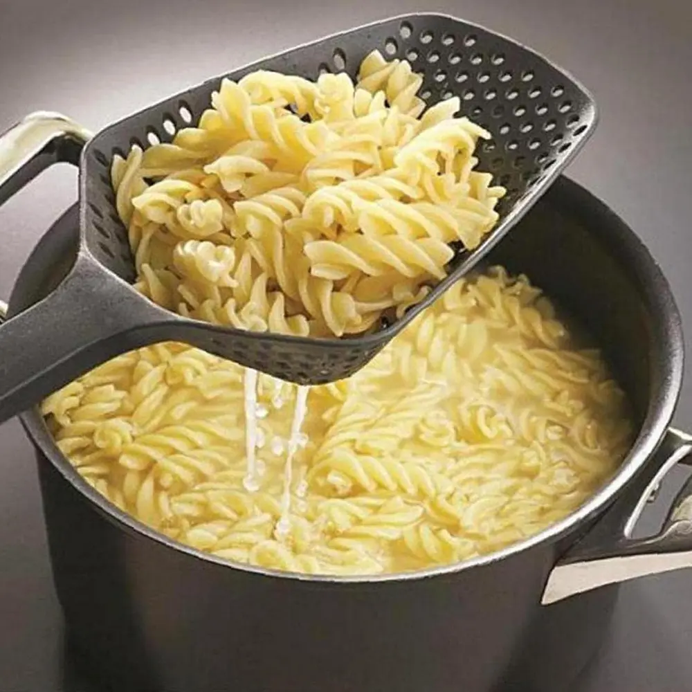 Material plastik nilon memiliki kekuatan dan ketahanan yang lebih baik ketimbang plastik biasa. Dengan begitu, Anda bisa menggunakan saringan ini dengan aman di dalam air atau minyak panas.