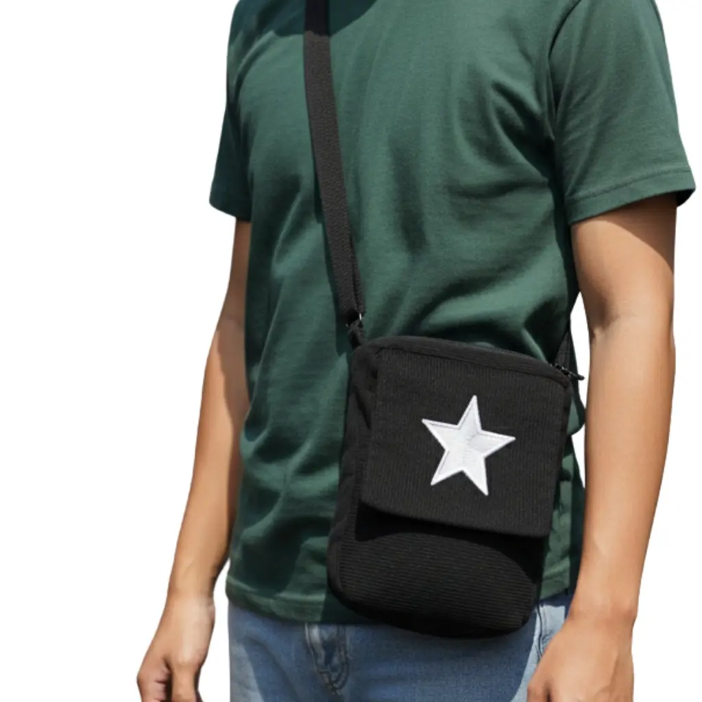Tas selempang unisex berbahan corduroy premium dengan desain logo bordir keren. Cocok untuk pria maupun wanita yang suka tampil simpel dan stylish!
