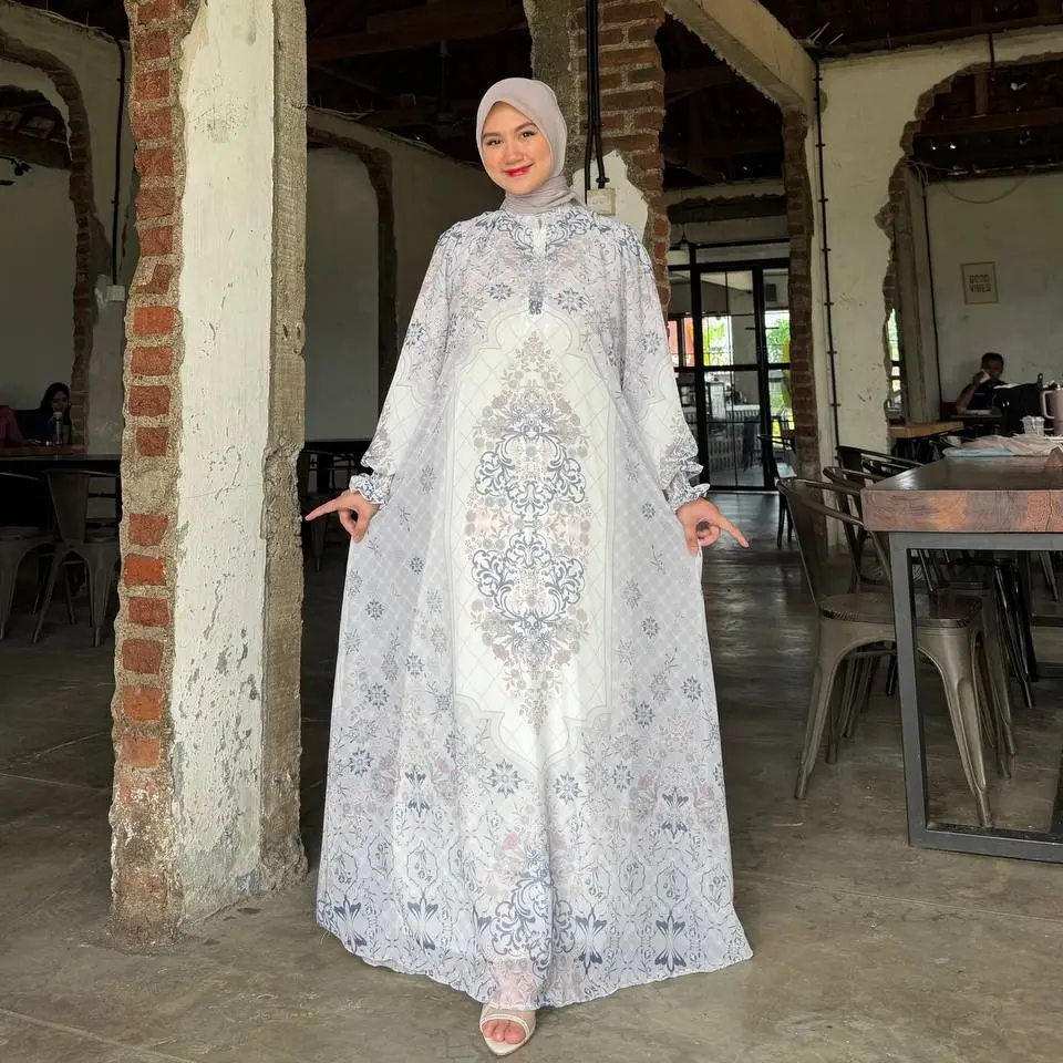 Potongan gamis dirancang panjang dan longgar, memberikan kenyamanan maksimal serta tampilan yang ringan dan berkelas. Sangat cocok dikenakan untuk acara formal, pengajian, kondangan, hingga momen spesial seperti Lebaran.