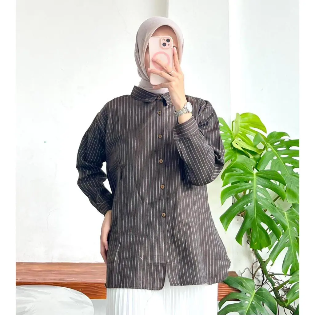 * KEMEJA FITTED PREMIUM _ KEMEJA WANITA GARIS GARIS*
