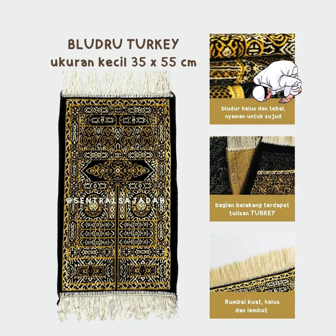 - Sajadah KEPALA ukuran kurang lebih di 35 x 55 cm