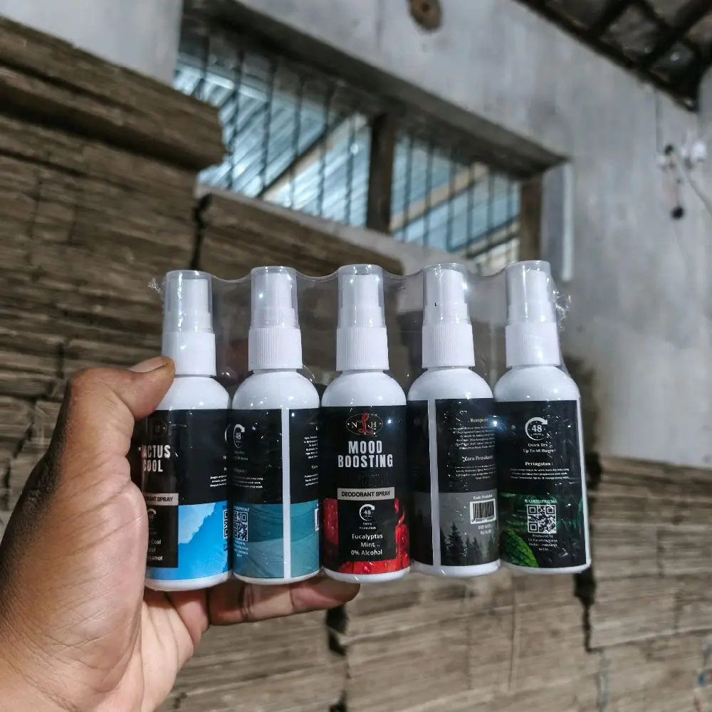 khusus dengan tawas bebas alkohol. Mencerahkan ketiak, anti keringat, dan anti bau badan. Hadir dengan 5 aroma: white amber, cactus cool, neutral flow, focus mint, dan mood boosting. Bahan alami dari buah dan bunga, aman untuk penggunaan sehari-hari.