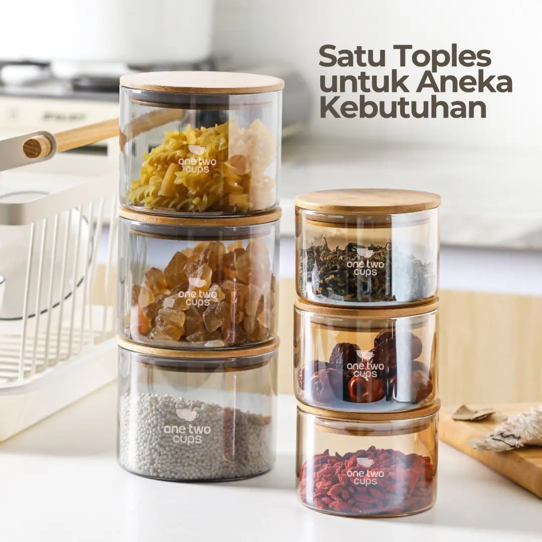 Jaga makanan favorit Anda agar tetap fresh dengan toples kaca dari One Two Cups. Terbuat dari kaca borosilikat berkualitas tinggi yang kokoh dan tebal, toples ini ideal untuk menyimpan camilan, kopi, dan bahan makanan lainnya. Desainnya yang elegan dan kedap udara menjadikannya pilihan tepat untuk mempercantik dapur sekaligus menjaga makanan agar tidak cepat melempem.