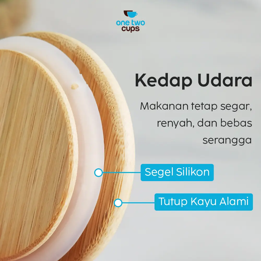 - 1 x One Two Cups Toples Kaca Penyimpanan Makanan Kedap Udara Storage Jar - GH1270