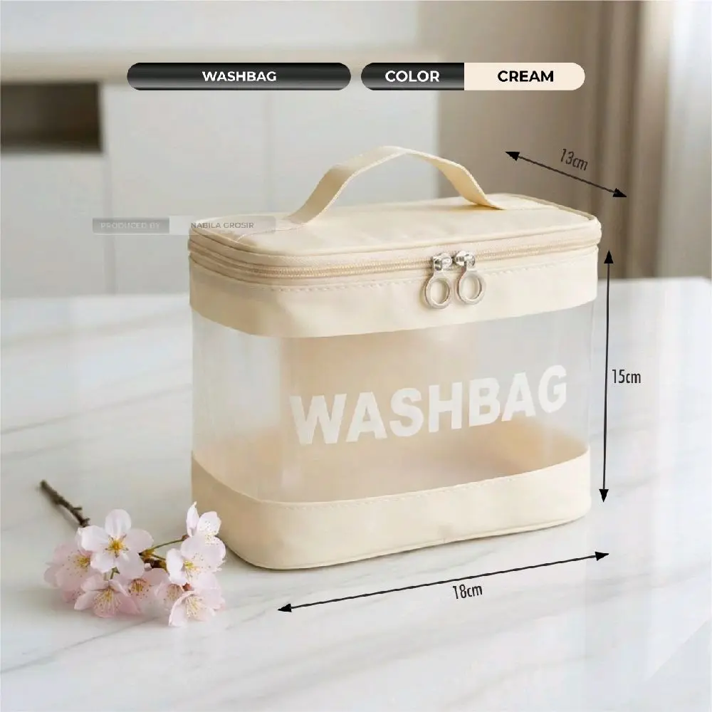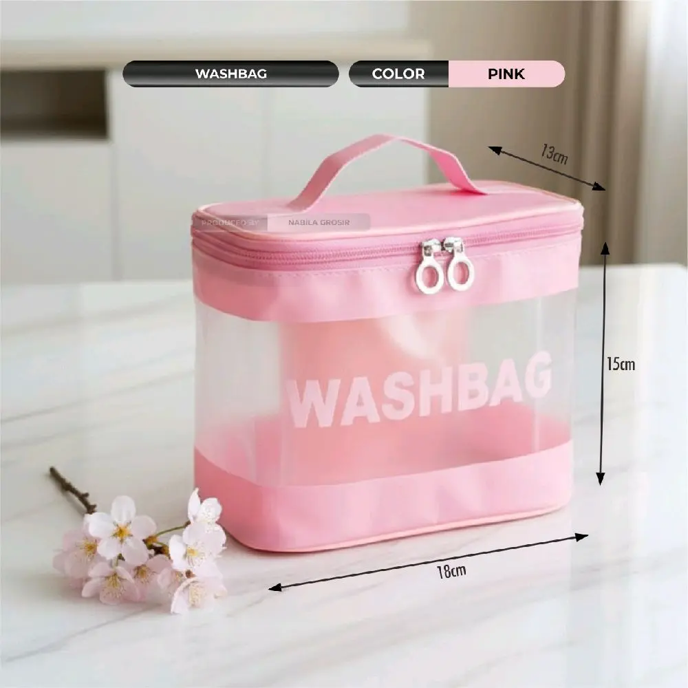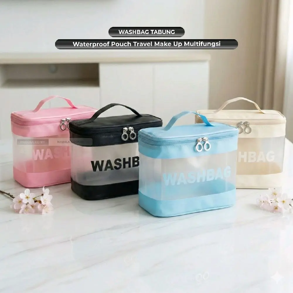 Washbag Transparan Model Tabung Waterproof Pouch Travel Make Up Multifungsi Tas Kosmetik Wanita