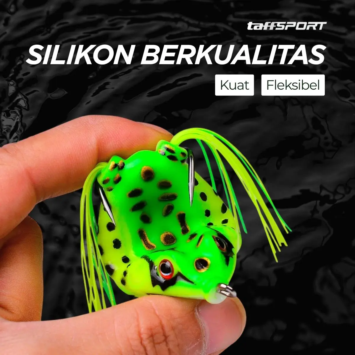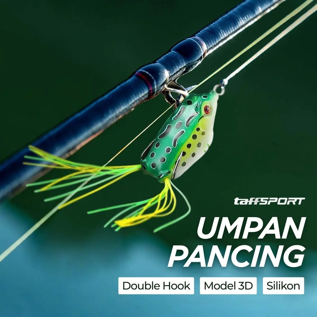 Umpan kodok silikon dengan cat 3 lapis realistis, mengapung stabil 45° meniru gaya berenang alami. Double hook tersembunyi anti nyangkut, ekor rumbai aktif menciptakan gerakan atraktif. Material silikon kuat dan elastis, tahan gigitan berulang, efektif memancing strike predator di area vegetasi padat maupun air tenang.