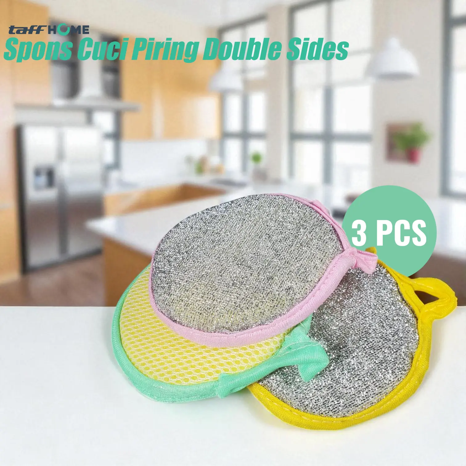 - 3 x TaffHOME Spons Cuci Piring Double Side Cleaning Sponge - 020