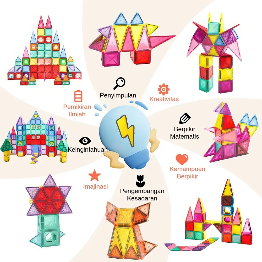 Mainan edukatif ini dirancang untuk membantu anak belajar sambil bermain — mengasah kreativitas, logika, dan kemampuan berpikir spasial sejak dini.
