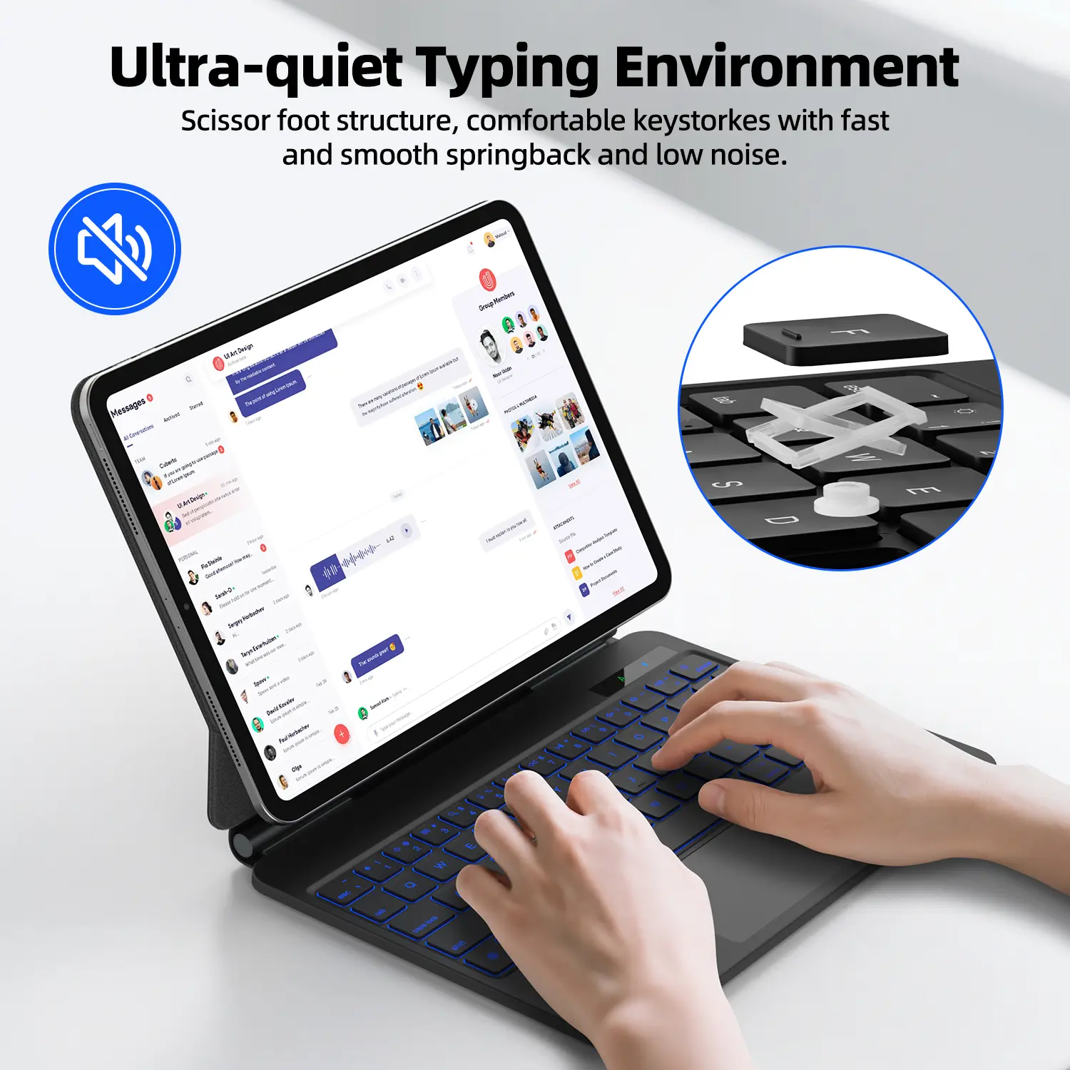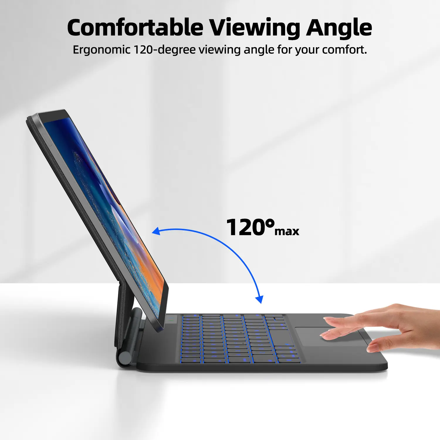 Multi-Angle Stand: The floating magic keyboard case offers a perfect angle for typing, sketching, watching videos, and more, helping reduce neck strain and enhance comfort for extended use.