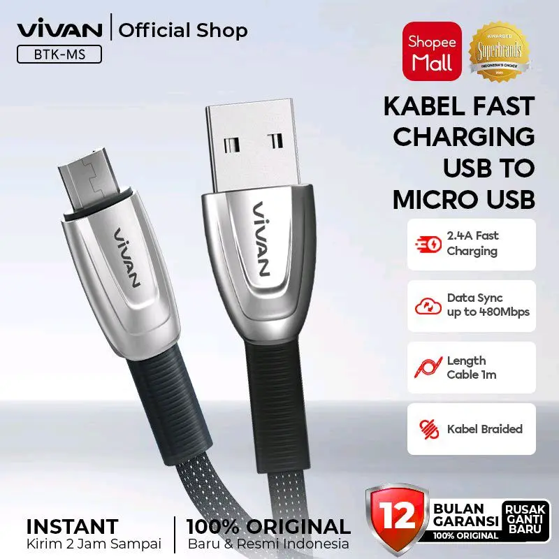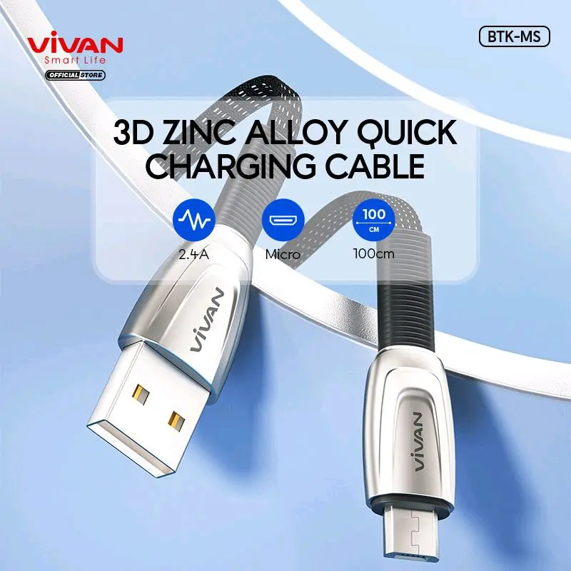 5. Vivan Kabel Fast Charging BTK-LS BTK-MS Micro USB Lightning 3A 80Mbps 1M Braided Original Resmi Indonesia