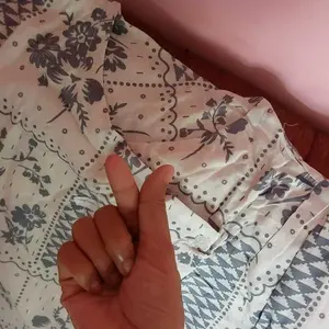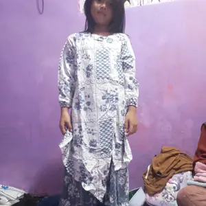 Alhamdulillah sampai sebelum lebaran wkwk ukuran pas utk bb80 tb160 tidak perlu vermak, bahan enak adem, warnanya jg sesuai. Walau atasan warna dasar putih tpi tidak nerawangππ