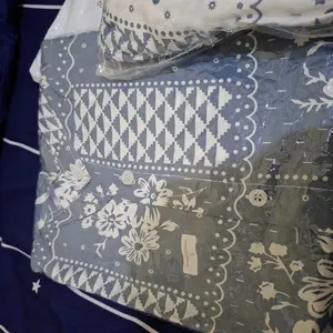 bahan adem , krn dasarnya wrna putih jd agak nerawang ,, knp di bagian celana ada ky rijek dan knp hrus di kasihkan ke aku, knp ., sy jg kn beli ,, dan di baju yg putih jg ada noda kotor".. mksh