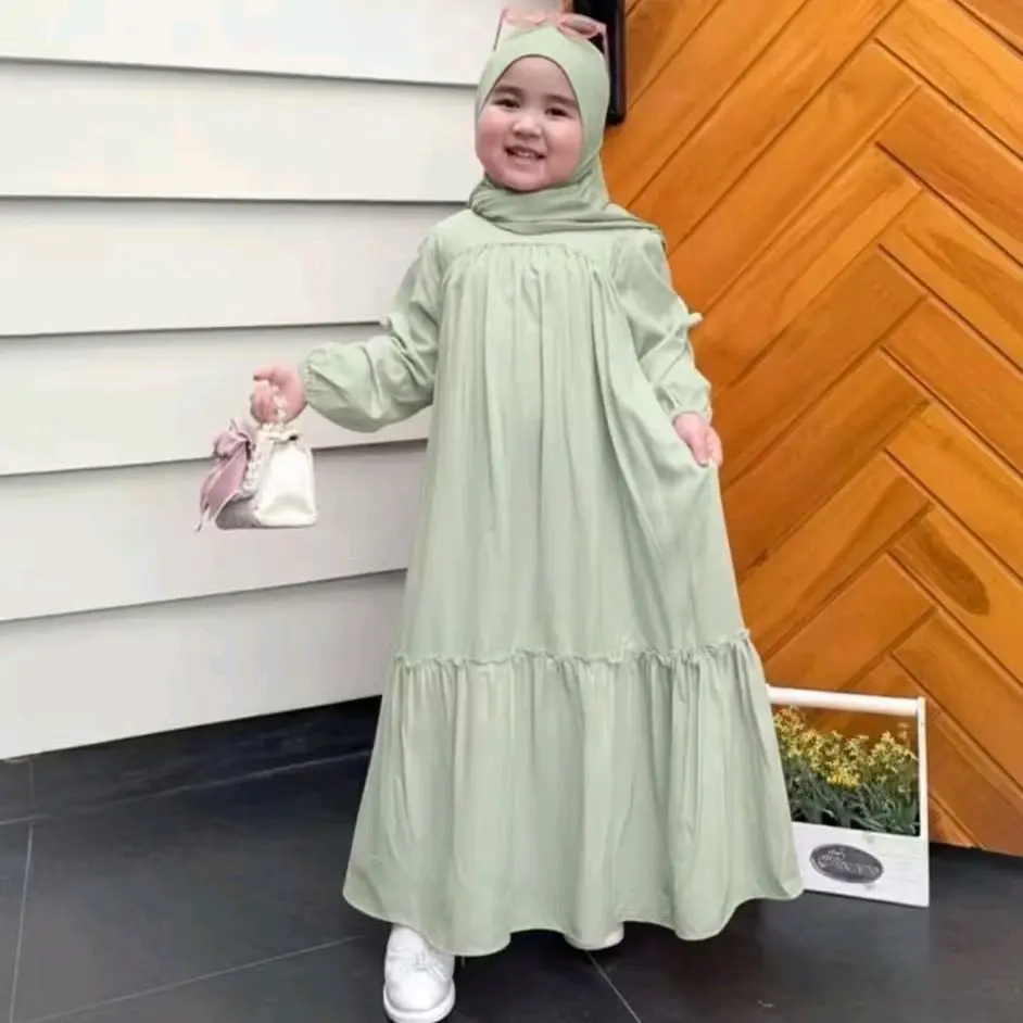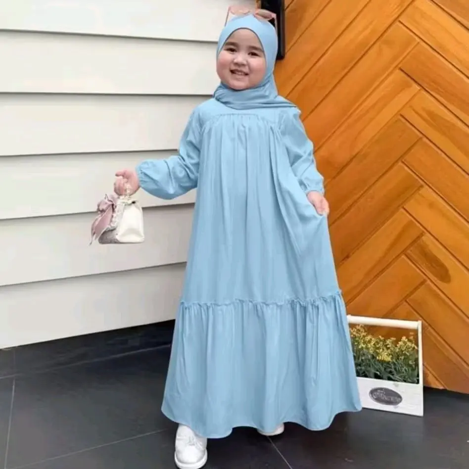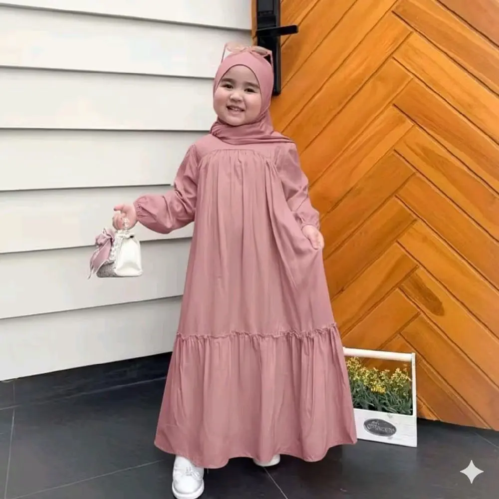 Dress anak/gamis anak terbaru yang super nyaman karna memakai bahan rayon premium yang adem dan nyaman buat anak"
