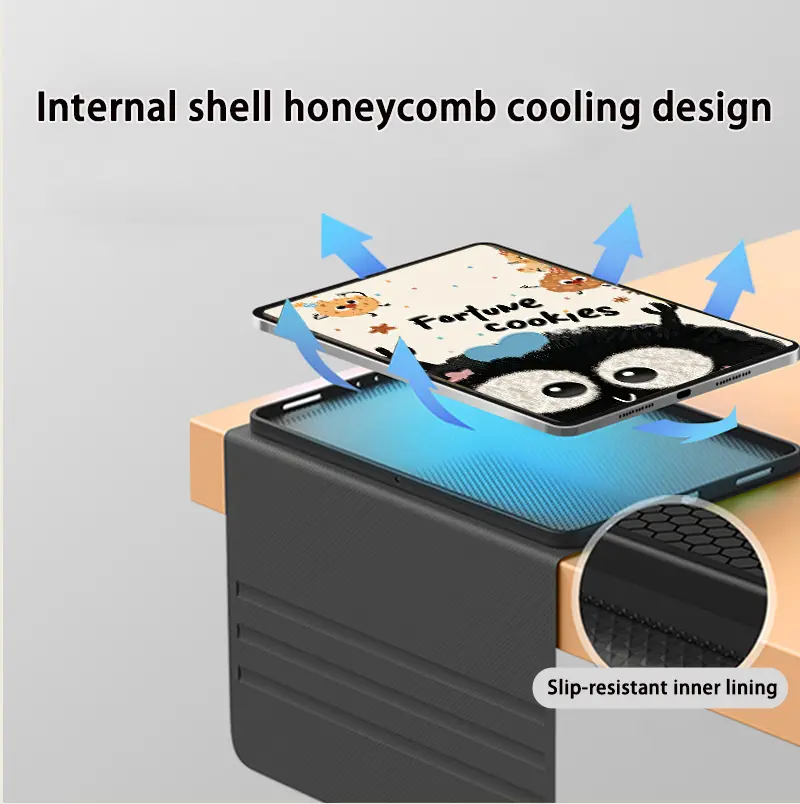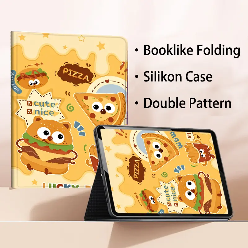 (Tanpa Slot Pen )-Bagian depan dan belakang terbuat dari kulit dan dapat dicetak dengan pola di kedua sisinya. Cangkang bagian dalam berupa cangkang lunak silikon hitam yang dapat ditopang seperti buku dan tidak termasuk tempat pena.